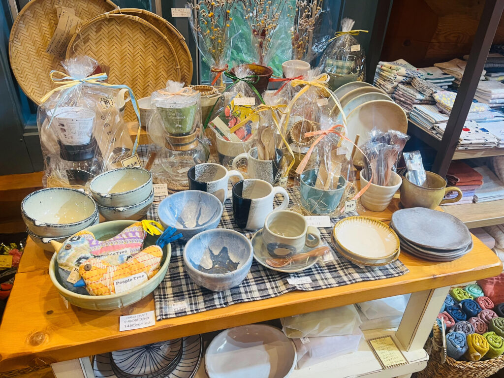 オーガニックコットンを使用したタオルやリネンのキッチン用品、木のベビー用おもちゃ、木の食卓用品、陶器、コーヒーグッズ、石鹸洗剤などなど・・を取り扱っています。